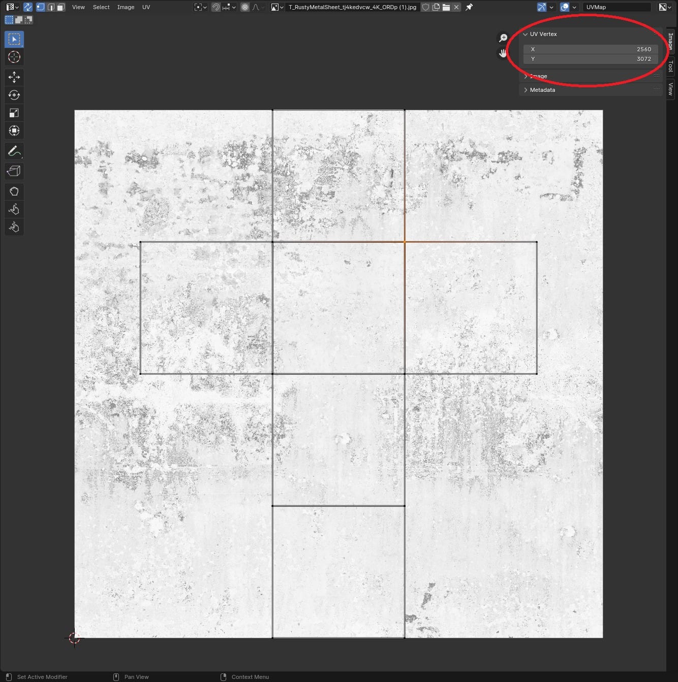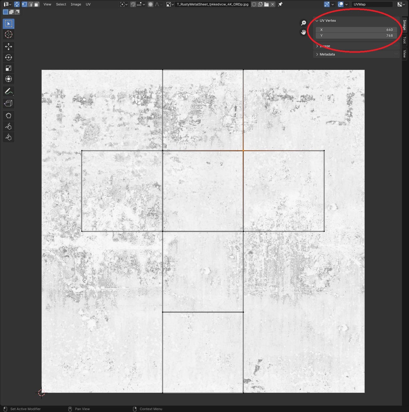 If I replace the texture with a 1K version, the cube's position in the UV space is unchanged, but the pixel coordinates now read 640, 768.