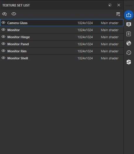 For example, the monitor portion of the laptop has a few different types of plastic, some shinier and some rougher, as well as the light metallic hinge pieces. I gave each of these components a different material, which means they each ended up with their own texture set in Substance: